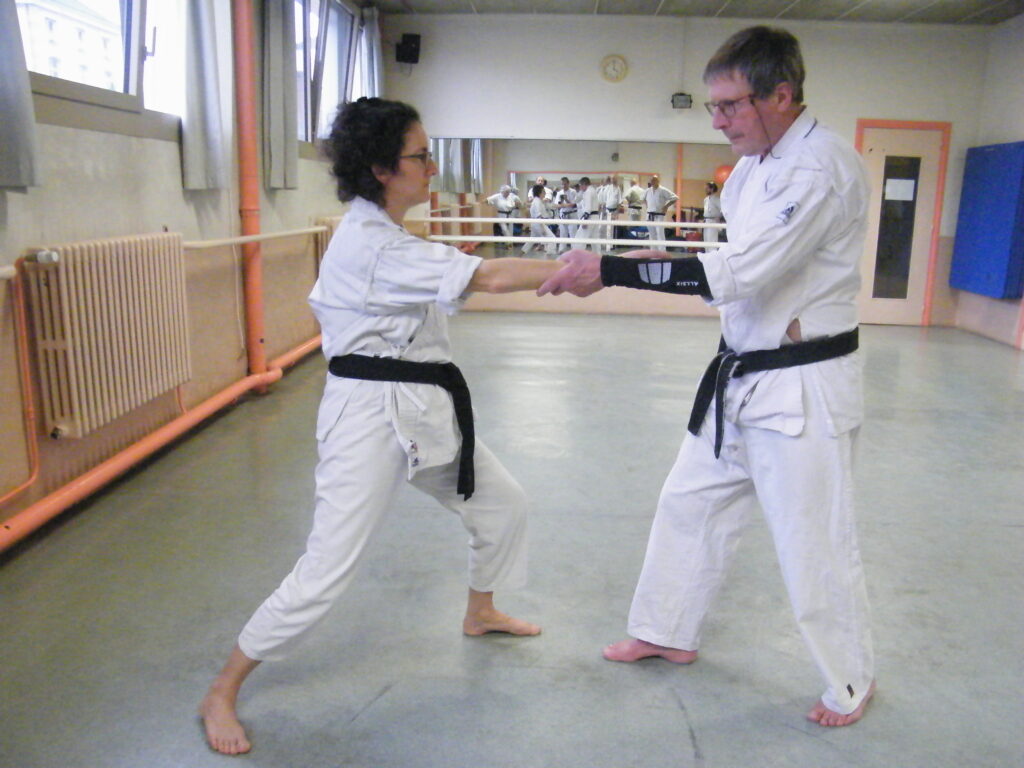 Dans un esprit d’engagement (dépassement de soi) les partenaires pratiquent des techniques d’attaque et défense avec pour objectif d’être en harmonie